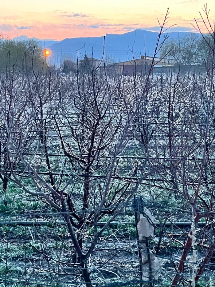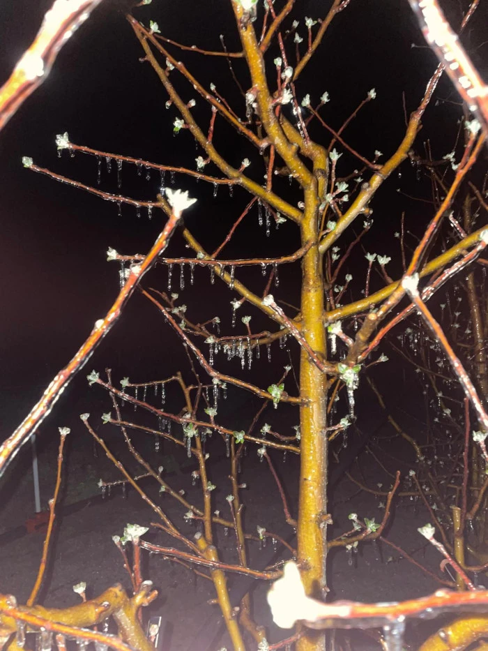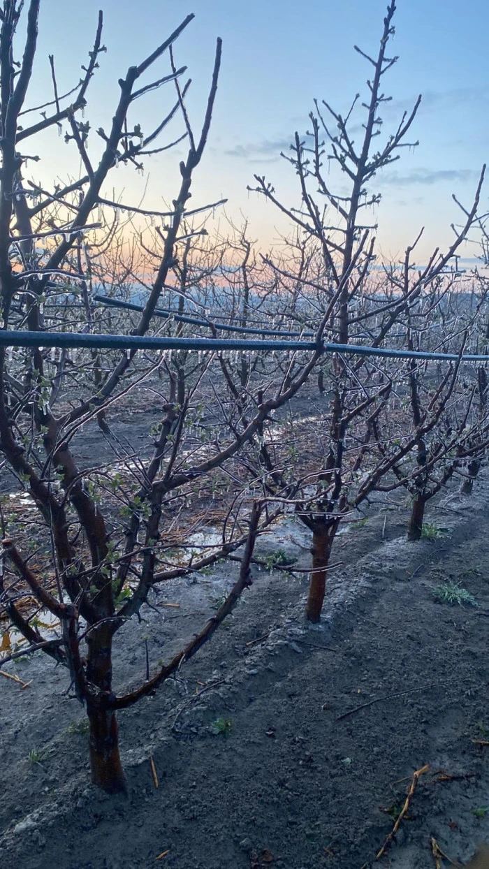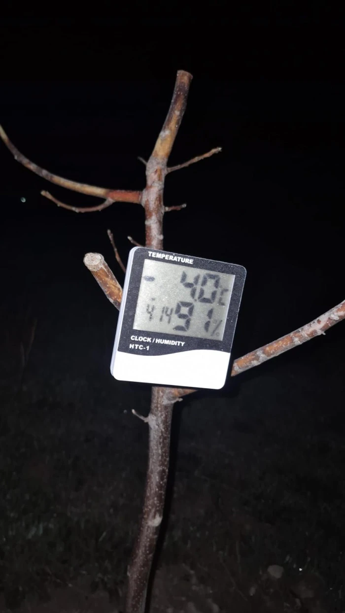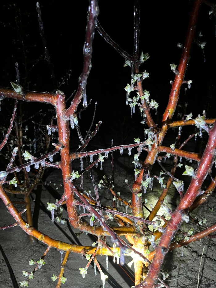 Mustafabeyli Mahallesi Soğla mevkiinde bahçesi bulunan üretici Ahmet Sarıçiçek, 11 Nisan’ı 12 Nisan’a bağlayan gece sıcaklığın eksi 5 dereceye kadar düşmesi üzerine sprinkler sistemini çalıştırdıklarını belirtti. Sarıçiçek, “Gece oluşan buzlanma, sabah güneşin etkisiyle havanın ısınmasıyla birlikte eridi. Bu ani hava değişikliğinin meyvelere zarar verip vermediği ise 2 gün sonra belli olacak” dedi.(RHA)