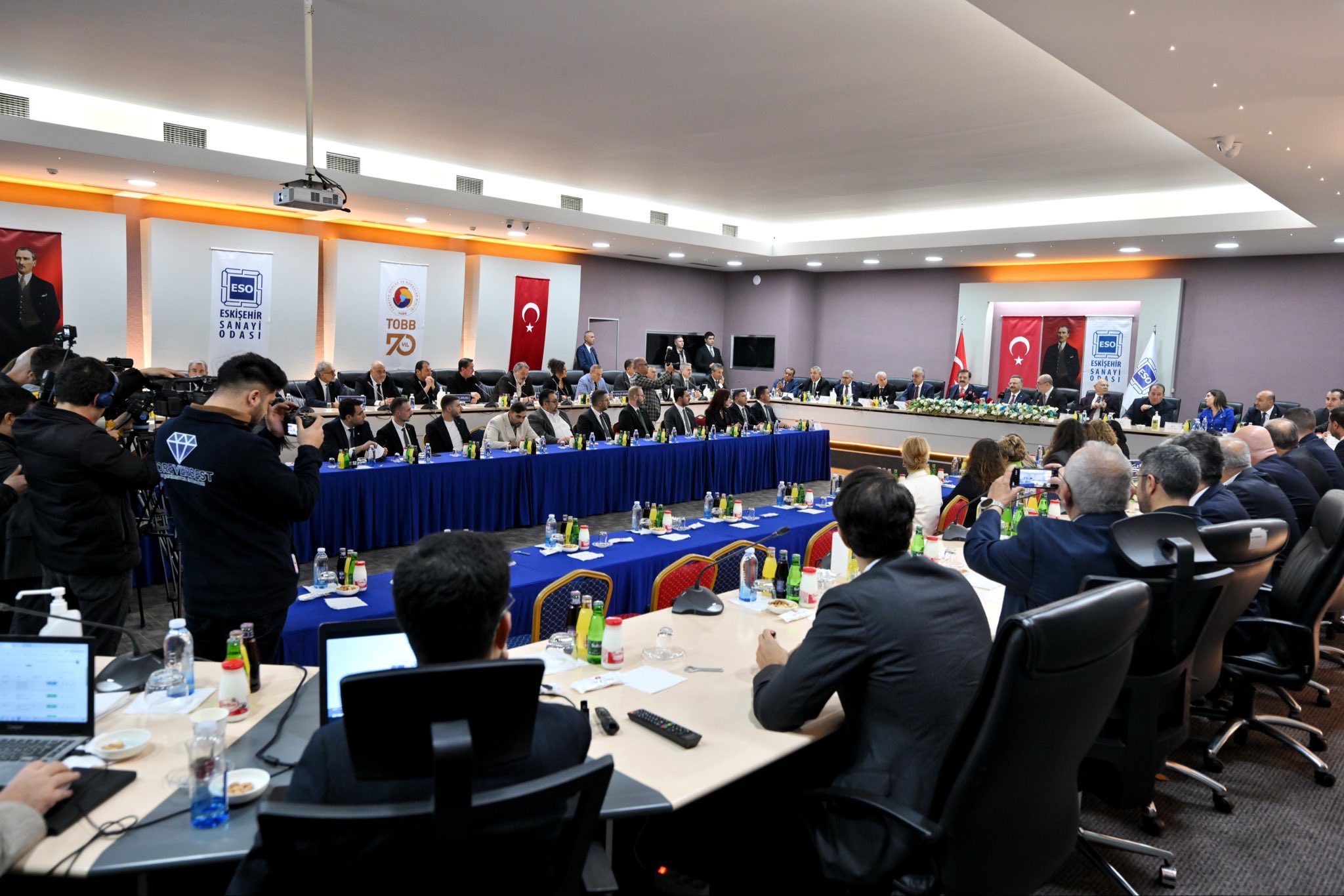Eskişehir Sanayi Odası'nda (ESO) düzenlenen toplantıda konuşan Hisarcıklıoğlu, Eskişehir’in 849 farklı sanayi ürünü ürettiğini belirterek, “Eskişehir, yüksek katma değerli sanayisiyle, girişimci gücüyle, üretim kültürüyle, beşeri sermayesiyle, Batı Anadolu’nun gözbebeği ve çekim merkezidir. Birinde alt yapı çalışması devam eden, 3 OSB’miz bulunmaktadır. İlk milli otomobilimiz Devrim’i üreten Eskişehir, bugün ileri teknoloji ürünlerin üretildiği, bir marka şehirdir. Sizler, 849 farklı sanayi ürünü üretilebiliyorsunuz. Bunların 176’sındaki üretim kapasitesiyle, Türkiye’de ilk 3’tesiniz, 54’ündeyse, Türkiye’de bir numarasınız. Yaşadığımız tüm sıkıntılara rağmen, iş hayatında hem ayakta kalıp hem de böyle başarı hikâyeleri yazabilmek, herkesin harcı değil. Bu nedenle, buradaki müteşebbis dostlarımla ve sizlerin nezdinde tüm sanayici kardeşlerimle ayrı ayrı iftihar ediyorum. Allah sizlerin çalışmasından, gayretinden, Eskişehir’e ve ülkemize kattığınız değerlerden razı olsun diyorum” dedi.