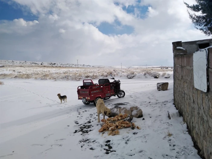 NEVŞEHİR'in Derinkuyu ilçesinde yaşayan Mevlüt Şen (73), doğada ve yerleşim yerlerine yakın bölgelerdeki hayvanların aç ve susuz kalmaması için yaz-kış demeden yıllardır su ve yem taşıyor.