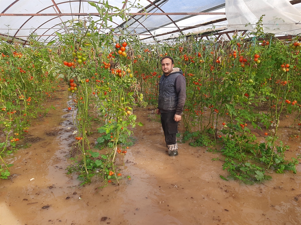 Aksu ilçesi Karaçalı bölgesinde serada domates üretimi yapan çiftçi İsa Rüzgar, Çiftçi Kayıt Sistemi'ne kayıtlı TARSİM sigortalı üretim yaptığını belirterek, "O gün sabah 07.00 sıralarında geldik. Seranın baş tarafı kanal, etrafı komple çevre betonu ve su yükselmeye başladı. Kanallarımız işlenmediği için su yükseldi. Önlem aldık, kapıların ağzını doldurduk, şişirdik. Su yükseldi de yükseldi. Bir süre sonra komple girdi. Betona kadar su çıktı. Ondan sonra 5 su motoru kurdum. 24 saatte suyu tahliye ettim. Tam 24 saatte. Suyun çok kaldığı noktalarda ağaçlarım öldü. Sonrasında daha çok zorlandık. 11 kişi, 12 kişi ilaç attık. Mecbur toplamak zorundaydım. Bir şey vereceğinden değil de mecbur emeğimi almak lazımdı. Bu ürünler çöp. İçinde sağlam kalan ağaçlar da var ama el arabası gitmiyor hiçbir şekilde. 80- 100 metre omuzda tek tek getiriyoruz" dedi. (DHA)