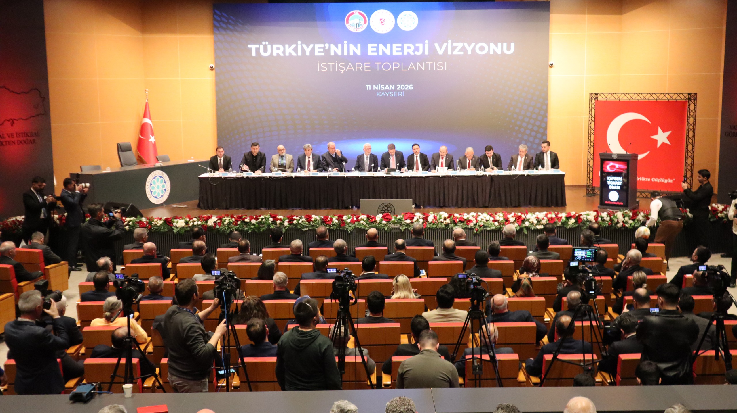 Kayseri Ticaret Odası’nda (KTO) düzenlenen ‘Türkiye’nin Enerji Vizyonu İstişare Toplantısı’na, Enerji ve Tabii Kaynaklar Bakanı " class="text-dark font-weight-bold" target="_blank"> Enerji ve Tabii Kaynaklar Bakanı Alparslan Bayraktar, Vali Gökmen Çiçek, AK Parti Genel Başkanvekili Mustafa Elitaş, AK Parti Kayseri Milletvekilleri Hulusi Akar, Dursun Ataş, Murat Cahid Cıngı, Bayar Özsoy, MHP Kayseri Milletvekili Baki Ersoy, Kayseri Ticaret Odası Başkanı Ömer Gülsoy, belediye başkanları ve KTO üyeleri katıldı. Toplantıda konuşan Kayseri Ticaret Odası Başkanı Ömer Gülsoy, “Yenilenebilir kaynakların şebekeye daha dengeli ve stabil aktarılması için depolama yatırımlarına yönelik teşviklerin verilmesi, sanayicimizin önünü açacaktır. İşletmelerimizin kendi çatılarına kurmak istediği GES yatırımlarında karşılaşılan trafo kapasite yetersizlikleri ve kota sorunlarının aşılması, son yapılan mevzuat değişikliği ile saatlik mahsuplaşma en büyük problemlerimizden birisidir. Mahsuplaşma sisteminin aylık bazdan saatlik bazda uygulanmaya başlanması, özellikle üretim ve tüketim dengesinin gün içerisinde değişkenlik göstermesi nedeniyle yatırımcıların gelirlerini önemli ölçüde azaltmıştır. Mahsuplaşma sisteminin yeniden aylık bazda uygulanması, dağıtım bedellerinin maliyet esaslı, makul ve öngörülebilir bir seviyeye çekilmesi, mevcut yatırımların korunmasına yönelik geçiş süreci düzenlemeleri yapılması, destek süresi sona ermiş santraller için ayrı bir tarife veya koruyucu mekanizma oluşturulması yeşil dönüşüm sürecimizi hızlandıracaktır” diye konuştu.
