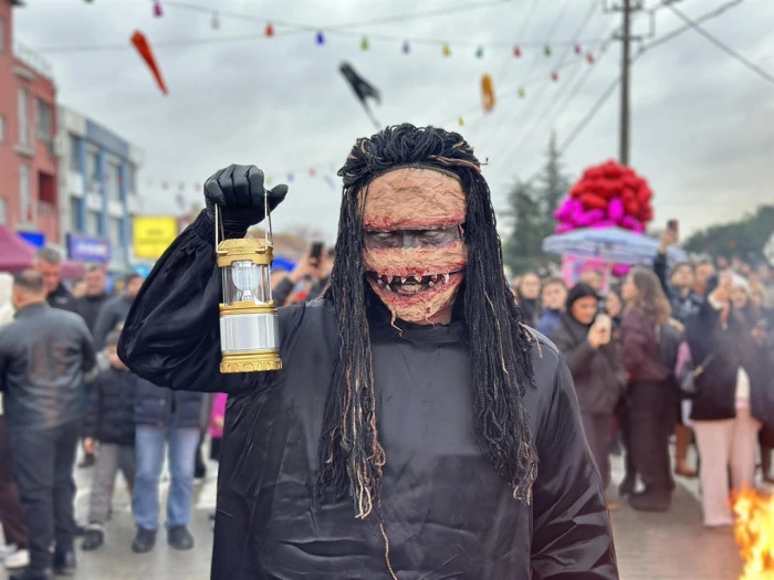 Etkinliğin ilerleyen saatlerinde beyaz çarşaflar giyip yüzlerini boyayanlar, evlerin camlarına vurarak mahalleliyi korkutacak. (DHA)