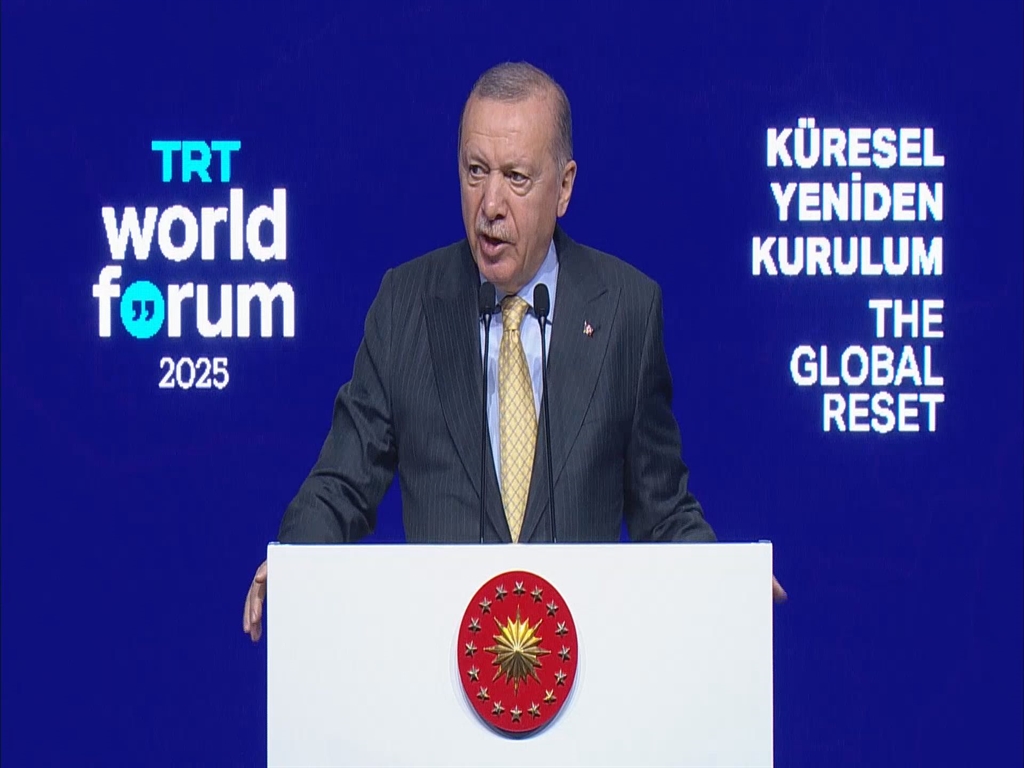 TRT World Forum 2025’in açılışında konuşan Cumhurbaşkanı Erdoğan, “İsrail’in yalana dayalı propaganda makinası karşısında, hayatları pahasına gerçekleri dünyaya duyurmaya çalışan 270 gazeteci katledildi. Masum değil, zalim İsrail’in ta kendisidir. Son dönemde birbiri ardına gelen Filistin’i tanıma kararlarını bu bakımdan son derece önemli buluyoruz. Henüz bu kararı almayan ülkeleri de bugünden tezi yok, harekete geçmeye ve Filistin Devleti’ni tanımaya davet ediyorum” dedi.