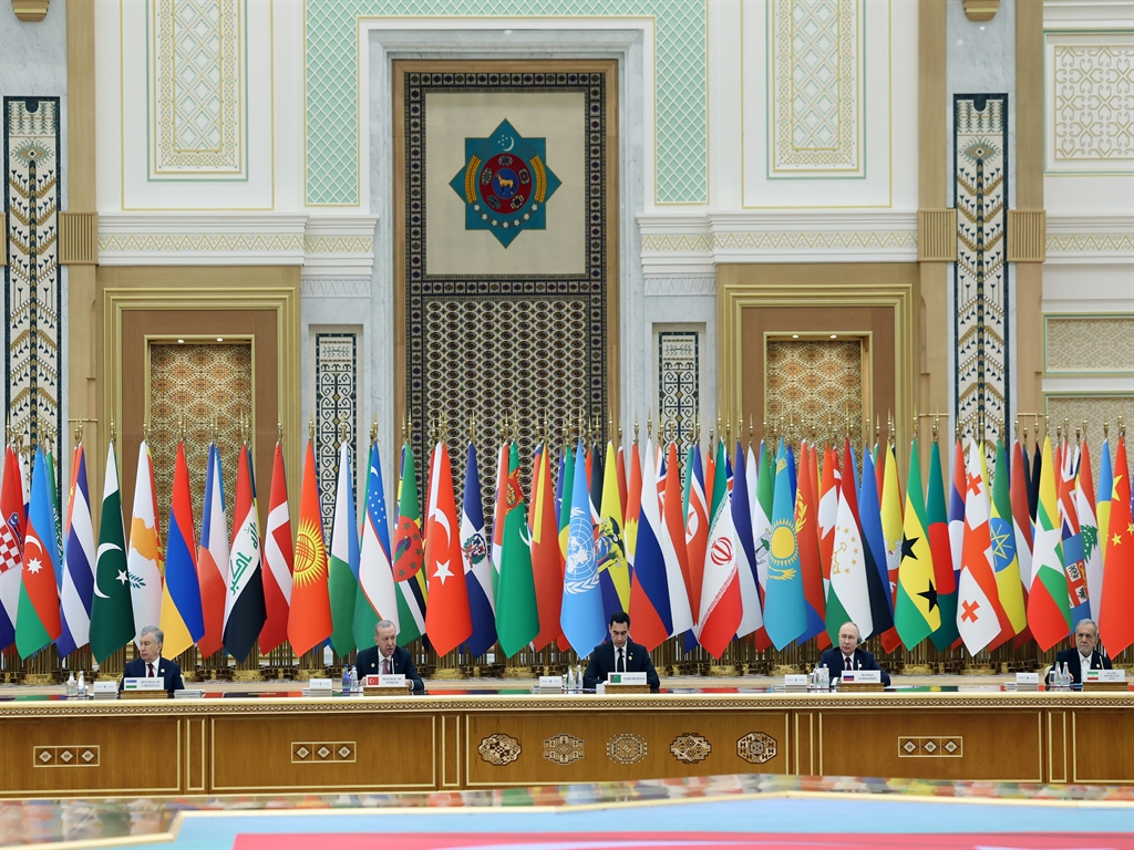 Birleşmiş Milletler Güvenlik Konseyinin 2800 sayılı kararının, kalıcı barış ve Gazze'nin yeniden imarı açısından da bir fırsat olmasını temenni eden Erdoğan, “Barışın tesisine yönelik tüm aşamalara Filistinlilerin dahil olmasını ve katkı vermesini elzem görüyoruz. Nihai hedef ise iki devletli çözümdür. Bunun formülü Filistinli kardeşlerimizin çektiği acılarda, onurlu mücadelelerinde ve uluslararası düzenlemelerde kayıtlıdır. Artık uluslararası toplumun, Filistin halkına olan borcunu ödeme zamanı gelmiştir. Bizleri bir araya getiren bu önemli forumun yeni bir vesile teşkil etmesini diliyorum. Türkiye bugün artık adil, tarafsız, güven veren yaklaşımıyla ara buluculuk alanında dünyanın önde gelen aktörleri arasında yer alıyor. Etiyopya ve Somali arasındaki gerginliği ortadan kaldırmak için başlattığımız Ankara süreci vasıtasıyla anlaşmazlıkların, barışçıl yöntemlerle giderilebileceğini bir kez daha kanıtlamış olduk. Eş başkanlığını yürüttüğümüz Birleşmiş Milletler, Avrupa Güvenlik ve İş birliği Teşkilatı ve İslam İşbirliği Teşkilatı bünyesindeki Arabuluculuk Dostlar Grupları ile Medeniyetler İttifakı Girişimi bu vizyonumuzun yansımalarını teşkil ediyor. İkinci Dünya Savaşı'ndan bu yana en fazla sayıda silahlı çatışmaya şahit oluyoruz. Böyle bir ortamda Türkmenistan'ın tarafsızlık ilkesi doğrultusunda önleyici diplomasi, barış, güvenlik ve kalkınmanın tesisine yönelik çabalarını gönülden destekliyoruz” ifadelerini kullandı.