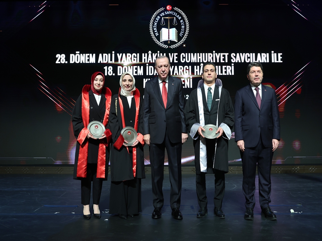 Cumhurbaşkanı Recep Tayyip Erdoğan, Beştepe Millet Kongre ve Kültür Merkezi'nde düzenlenen 28'inci Dönem Adli Yargı Hakim ve Cumhuriyet Savcıları ile 18'inci Dönem İdari Yargı Hakimleri Kura Töreni'ne katıldı. Konuşmasına, törenin ülke, millet ve adalet teşkilatı için hayırlara vesile olmasını dileyerek başlayan Erdoğan, eğitim ve staj dönemlerini başarıyla tamamlayarak mesleğe adım atmaya hazırlanan 712 hakim, 492 Cumhuriyet savcısı ve 147 idari hakimi tebrik etti.