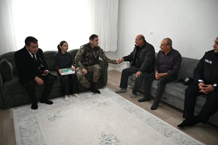 Diyarbakır’ın Sur ilçesinde 6 Eylül 2015’te zırhlı polis aracına düzenlenen roketatarlı saldırıda şehit olan özel harekat polisi Muzaffer Can Ersoy’un Bünyan ilçesinde yaşayan ailesi, İl Emniyet Müdürü Atanur Aydın ve Bünyan Belediye Başkanı Selahattin Metin tarafından ziyaret edildi. Ziyarette Atanur Aydın, şehidin kızı Zeynep Ersoy’a karne hediyesi olarak Kayserispor forması ve oyun seti takdim etti. İl Emniyet Müdürlüğü’nün sosyal medya hesabından yapılan açıklamada, “İl Emniyet Müdürümüz Sayın Atanur Aydın ve Bünyan Belediye Başkanı Sayın Selahattin Metin, 06.09.2015 tarihinde Diyarbakır Özel Harekat Şube Müdürlüğünde görevliyken terör örgütü mensuplarınca yapılan saldırı sonucu şehadete yürüyen kahraman şehidimiz Muzaffer Can Ersoy’un kıymetli evladı Zeynep Ersoy’u, eğitim dönemi sonunda aldığı karne vesilesiyle ziyaret ederek göstermiş olduğu emek ve gayreti tebrik etmiştir. Tüm şehitlerimize ve ebediyete irtihal eden gazilerimize Allah’tan rahmet, hayattaki gazilerimize sağlıklı ve uzun ömürler dileriz. Eğitim öğretim döneminde kıymetli öğretmenlerimize ve sevgili öğrencilerimize başarılarla dolu bir eğitim hayatı temenni ederiz” denildi. (RHA)