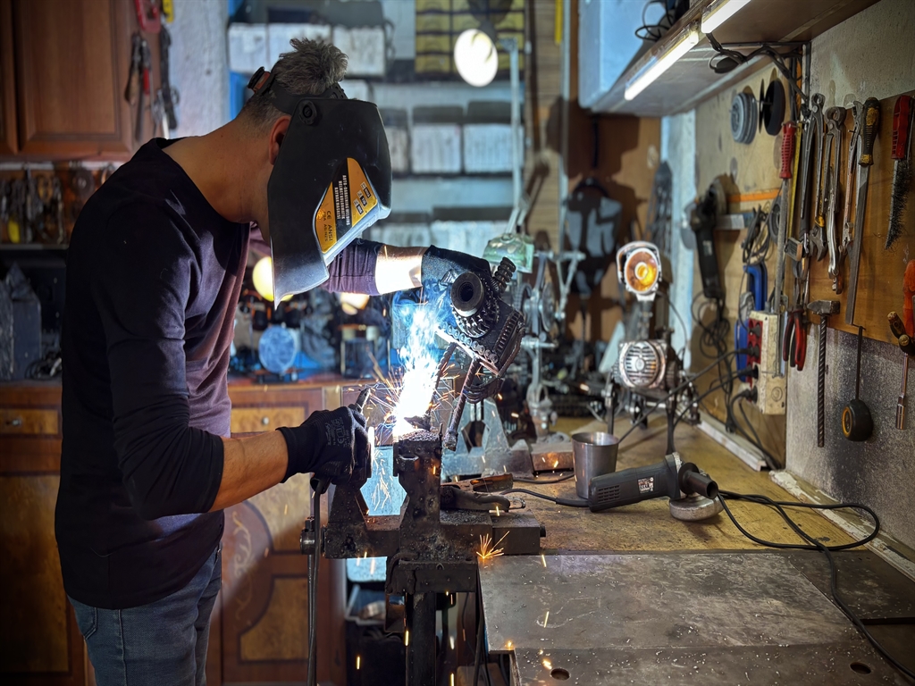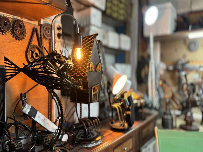 Ankara Üniversitesi Veteriner Fakültesi'nde işçi olarak çalışan, evli ve 4 çocuk babası Emrah Korkmaz, hurda metallerden lambalar ve dekoratif objeler üretip, antika pazarlarında sergiliyor.