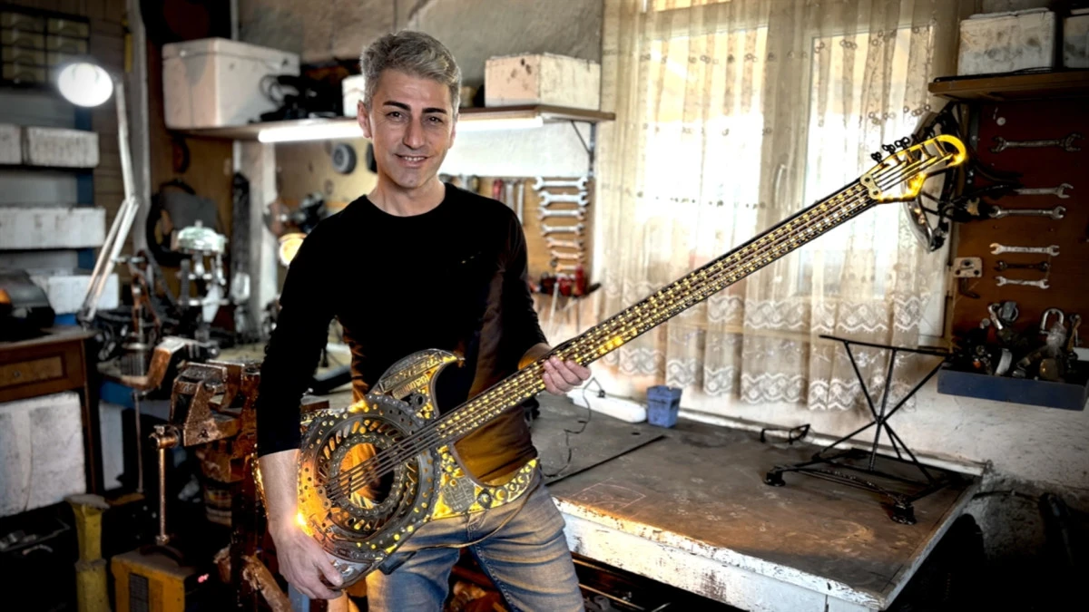 Emrah Korkmaz, pandemi döneminde başladığı hurda metalleri dekoratif objelere dönüştürme hobisi ile aynı zamanda geri dönüşüme katkı sağladığını söyledi. Aynı zamanda kuaför olduğunu belirten Korkmaz, "Erkek kuaförünün daha çok estetiğe önem vermesi gerekiyor. Yaptığım lambalarda da o estetik ruhun yaşaması gerekiyor. Normalde lambalarda kablo görülür; ama ben o kabloları gizleyebileceğim tasarımla çalışıyorum. Benim işim geri dönüşüm. Mesai bitiminde hurdacıları gezerim. Gözüme hoş görünen veya bir şey işleyebileceğim olan metalleri toplarım. Eğer yapacağım lamba küçükse 10-15 parçayla bitirebiliriz. Ama mesela yaptığım gitarda çok fazla parça var" dedi.