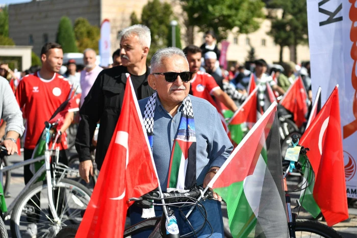 Kayseri Büyükşehir Belediye Başkanı Dr. Memduh Büyükkılıç, Kayseri İlim Yayma Cemiyeti tarafından Filistin’e destek amacıyla düzenlenen “Kayseri’den Filistin’e Küresel Sumud Filosu’na Destek” bisiklet turuna katıldı. Başkan Büyükkılıç, “Sumud Filosu dünyaya güçlü bir mesaj verdi” dedi.