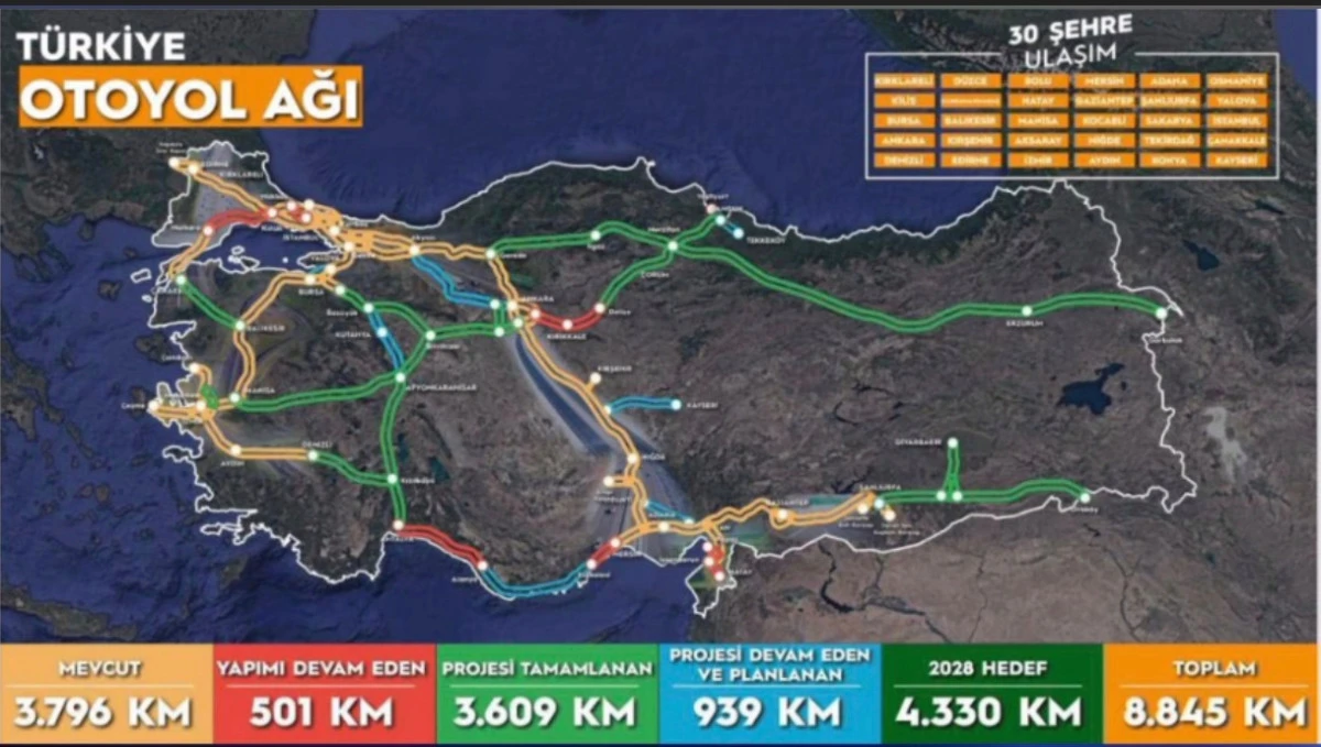 Ulaştırma ve Altyapı Bakanlığı tarafından paylaşılan güncel “Türkiye Otoyol Ağı” haritasında Kayseri’nin devam eden otoyol projeleri arasında yer alması kentte memnuniyetle karşılandı. AK Parti Kayseri İl Başkanı Hüseyin Okandan, konuya ilişkin yaptığı açıklamada, şehre değer katacak her yatırımın yakın takipçisi olduklarını ifade etti.