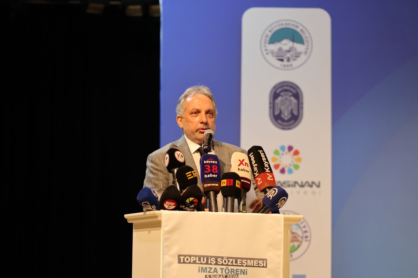 Kadir Has Kültür Merkezi’nde düzenlenen törene, Büyükşehir Belediye Başkanı Memduh Büyükkılıç, Melikgazi Belediye Başkanı Mustafa Palancıoğlu, Kocasinan Belediye Başkanı Ahmet Çolakbayrakdar, Talas Belediye Başkanı Mustafa Yalçın, Hacılar Belediye Başkanı Bilal Özdoğan, sendika yöneticileri, belediye bürokratları ve çok sayıda belediye işçisi katıldı. Törende konuşan Büyükşehir Belediye Başkanı Memduh Büyükkılıç, “Biz sade bir sözleşmeye imza atmıyoruz. Kayseri belediyeleri en çok yatırımı yapıyorsa, bu hizmetlerle gurur duyuyorsa, bunu sağlayan sizlersiniz. Hepimizin içine sinen bir imza atılmıştır. Sizlere minnettarız, teşekkür ediyoruz. Kurumlarımızla, şirketlerimizle, KASKİ’mizle, tüm belediyelerimizle bu şehri daha iyi bir noktaya taşıyacağımıza yürekten inanıyorum. Bizlere bu gücü veren Kayseri hemşehrilerimize de ayrıca teşekkür ediyorum” diye konuştu.