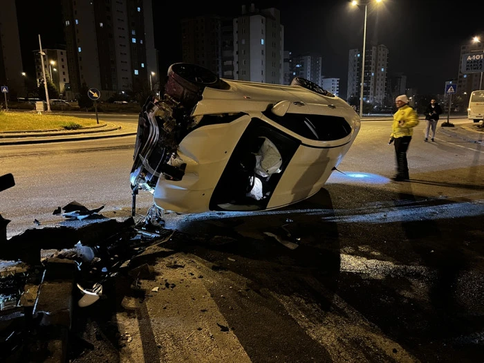 Kayseri’de iki otomobil çarpıştıktan sonra takla attı: 2 yaralı