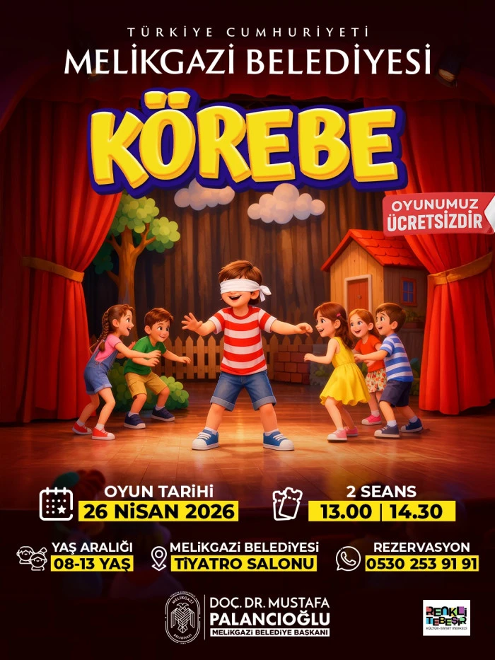 Kültüre ve sanata büyük önem veren ve bu alanda birbirinden farklı birçok çalışmaya imza atan Melikgazi Belediyesi, 26 Nisan günü sergileyeceği Körebe oyununa tüm çocukları davet etti.