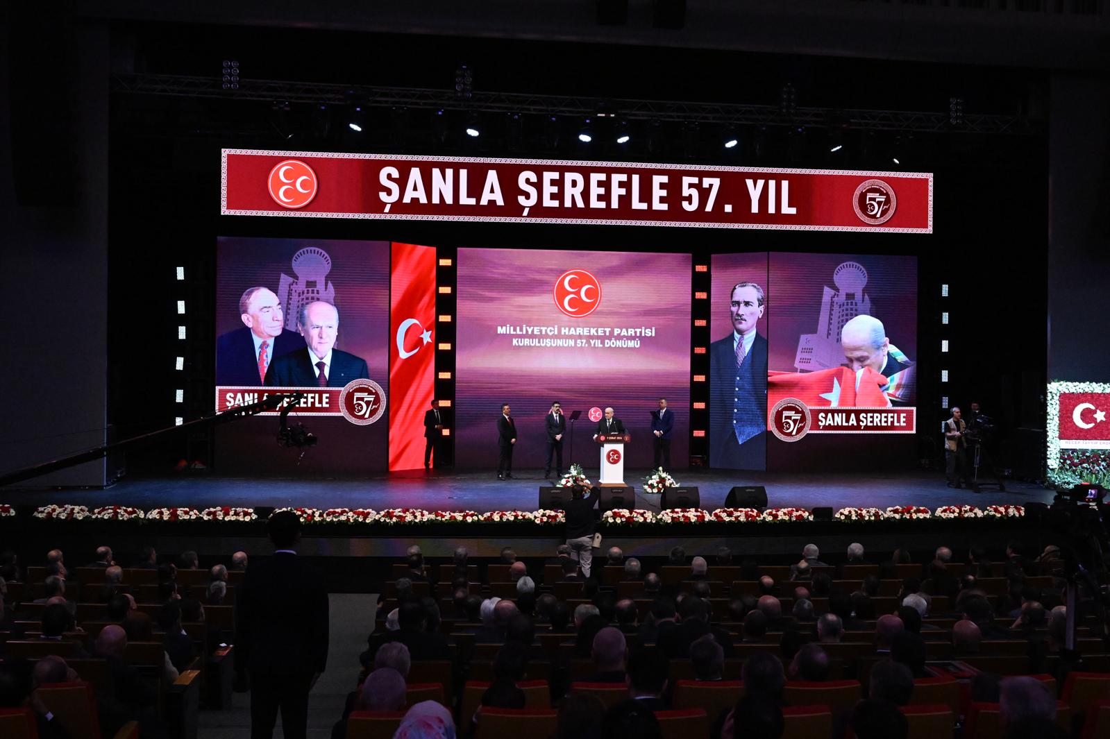 MHP'nin 57'nci kuruluş yıl dönümü nedeniyle Ankara Ticaret Odası Fuar ve Kongre Merkezi'nde 'Şanla Şerefle 57'nci Yıl' programı düzenlendi. Programa, MHP Genel Başkanı Devlet Bahçeli'nin yanı sıra genel başkan yardımcıları, milletvekilleri, siyasi parti temsilcileri ve çok sayıda vatandaş katıldı. Cumhurbaşkanı Recep Tayyip Erdoğan, Türk bayrağı motifli, 57'nci yıla atfen 57 gülün yer aldığı tebrik çiçeği programa gönderdi.