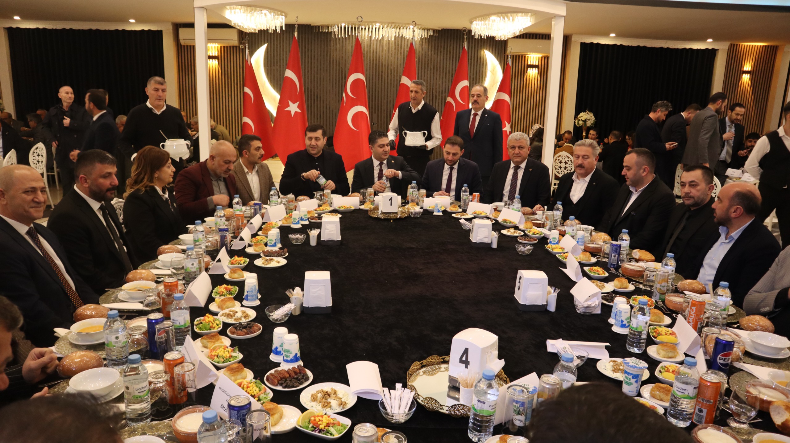 MHP Melikgazi İlçe Başkanlığı tarafından düzenlenen iftar programına, MHP Genel Başkan Yardımcısı ve Kayseri Milletvekili İsmail Özdemir, MHP Kayseri Milletvekili Baki Ersoy, Melikgazi Belediye Başkanı Mustafa Palancıoğlu, MHP İl Başkanı Enes Ertuğrul Kalın, AK Parti Melikgazi İlçe Başkanı Tayyar Şahin ve partililer katıldı. İftar sonrası konuşan Melikgazi Belediye Başkanı Mustafa Palancıoğlu, "Cumhur İttifakı olarak Türkiye’de en çok hizmet eden belediye Melikgazi Belediyesi’dir. Dolayısıyla burada da Cumhur İttifakı’nın milletvekillerinin, il başkanlarının, ilçe başkanlarının ve meclis üyelerinin büyük katkıları var. Çünkü biz şu anda yaptığımız hizmetleri birlikte ve ele ele yapıyoruz. Çünkü hizmetleri birlikte el ele yapıyoruz. Türkiye'de en çok okul, kütüphane, sağlık ocağı ve park yapan Melikgazi Belediyesi. Tabi bu birlik ve beraberlik sayesinde oluyor. Biz mecliste Cumhur İttifakı olarak oy birliği ile bütün kararlarımızı geçiriyoruz. Uyum içerisindeyiz” diye konuştu.
