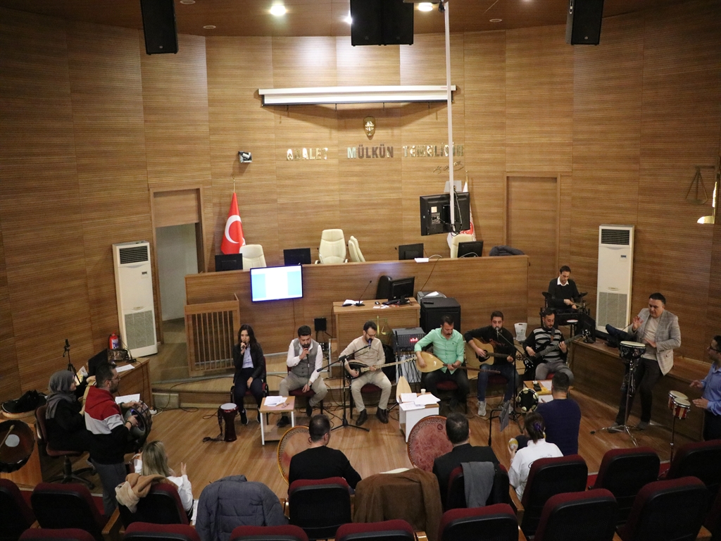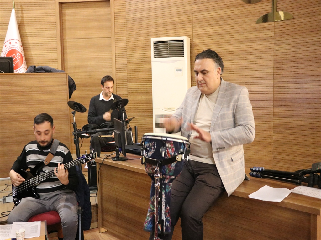 İş stresi nedeniyle mesai saatleri sonrası adliyeye gelerek çalışmalara katıldığını anlatan Doç. Dr. Sabri Batın, “Türkiye’de adliye çalışanlarından oluşan ilk resmi ritim grubuna dışarıdan dahil olmak da benim için büyük bir gurur. Çok kıymetli. Müziğin, mesleklerin ve ünvanların ötesinde çok büyük bir birleştirici gücü var. Mesleğim gereği yoğun ve stresli bir iş yapıyorum. Adliye ortamı da kendine göre zor. Ama ritim grubuna adım attığım zaman her şey bir anda akıp gidiyor. Benim için müzik, hem terapi hem de hayatın ritmini yeniden hissedebildiğim bir alan oldu. O yüzden ritmin ortak duyguların dili olduğuna inanıyorum. Biz de o dili birlikte konuşuyoruz. 19 Aralık’ta da kent protokolünün katılacağı benim ilk konserimin gelmesini heyecanla bekliyorum” diye konuştu.