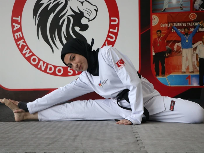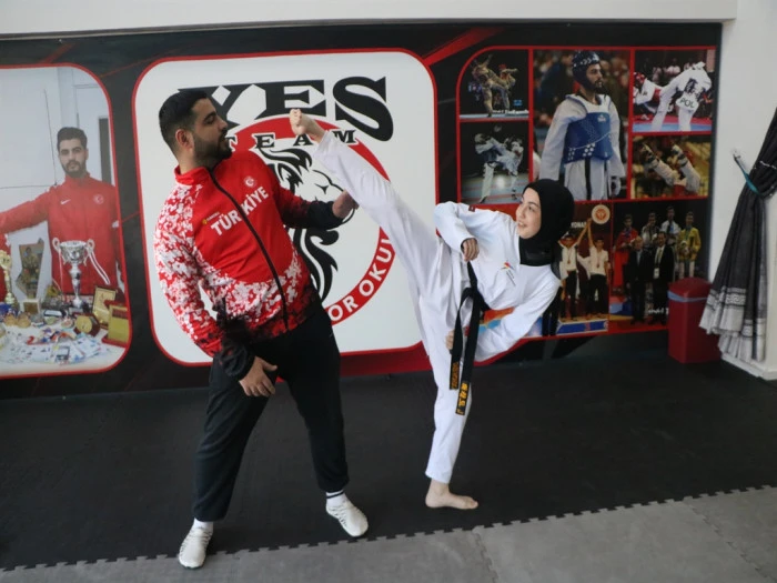 Salondaki çocukları izleyip tekvandoya başlayan işitme engelli Fatma’nın hedefi Avrupa şampiyonluğu