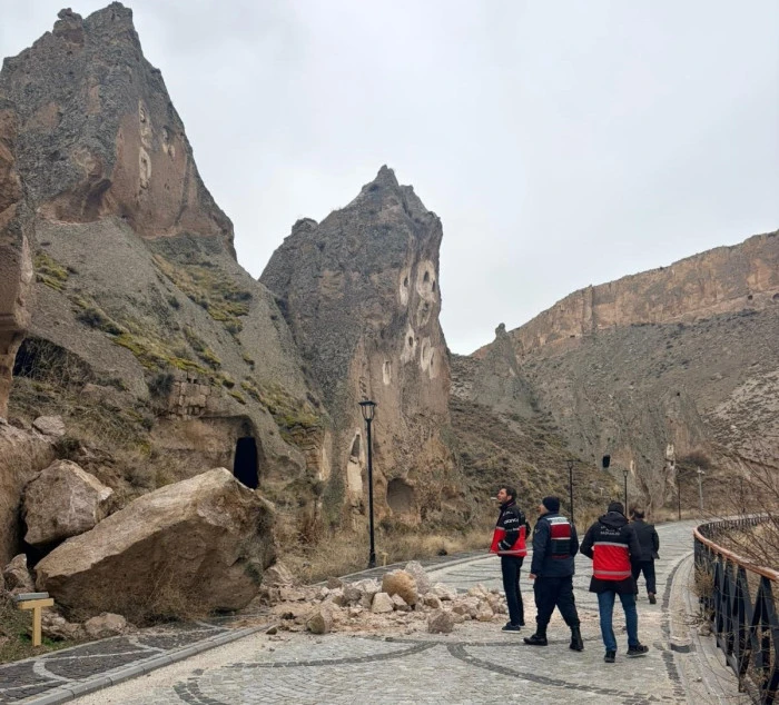 Kayseri’nin Yeşilhisar ilçesi Soğanlı Mahallesi’ndeki vadideki yürüyüş yoluna, kaya parçası düştü. Yaşanan olay sonrası bölgede güvenlik önlemleri artırıldı. Olayla ilgili sanal medya hesabındtan açıklama yapan Kapadokya Alan Başkanı Cem Aslanbay, “Kayseri Soğanlı Vadisi’nde bulunan kaya oluşumda meydana gelen kaya kopması sonrasında, teknik ekiplerimiz ivedilikle alana intikal etmiştir. Söz konusu alanda yapılan ilk incelemelerin ardından uzman ekiplerimizce gerekli güvenlik önlemleri alınmıştır. Ziyaretçi sirkülasyonunun ve saha güvenliğinin olumsuz etkilenmemesi adına bölgede titiz bir morfolojik temizlik yapılarak güvenli alan oluşturulmuştur. Gelişen lokal kütle hareketinin nedenlerine dair detaylı hasar tespiti, statik-yapısal analizler, jeomorfolojik risk değerlendirmelerinin raporlanması süreci ve hazırlanan veriler ışığında uygulanacak kalıcı müdahale yöntemleri, Bilim Kurulumuz ve Alan Komisyonumuzca evrensel koruma ilkeleri ve bilimsel kriterler çerçevesinde titizlikle değerlendirilecektir. Yaşanan hadise sebebiyle Soğanlı esnafımıza, kıymetli ziyaretçilere ve bölge insanımıza geçmiş olsun dileklerimi iletiyorum” ifadelerine yer verdi.