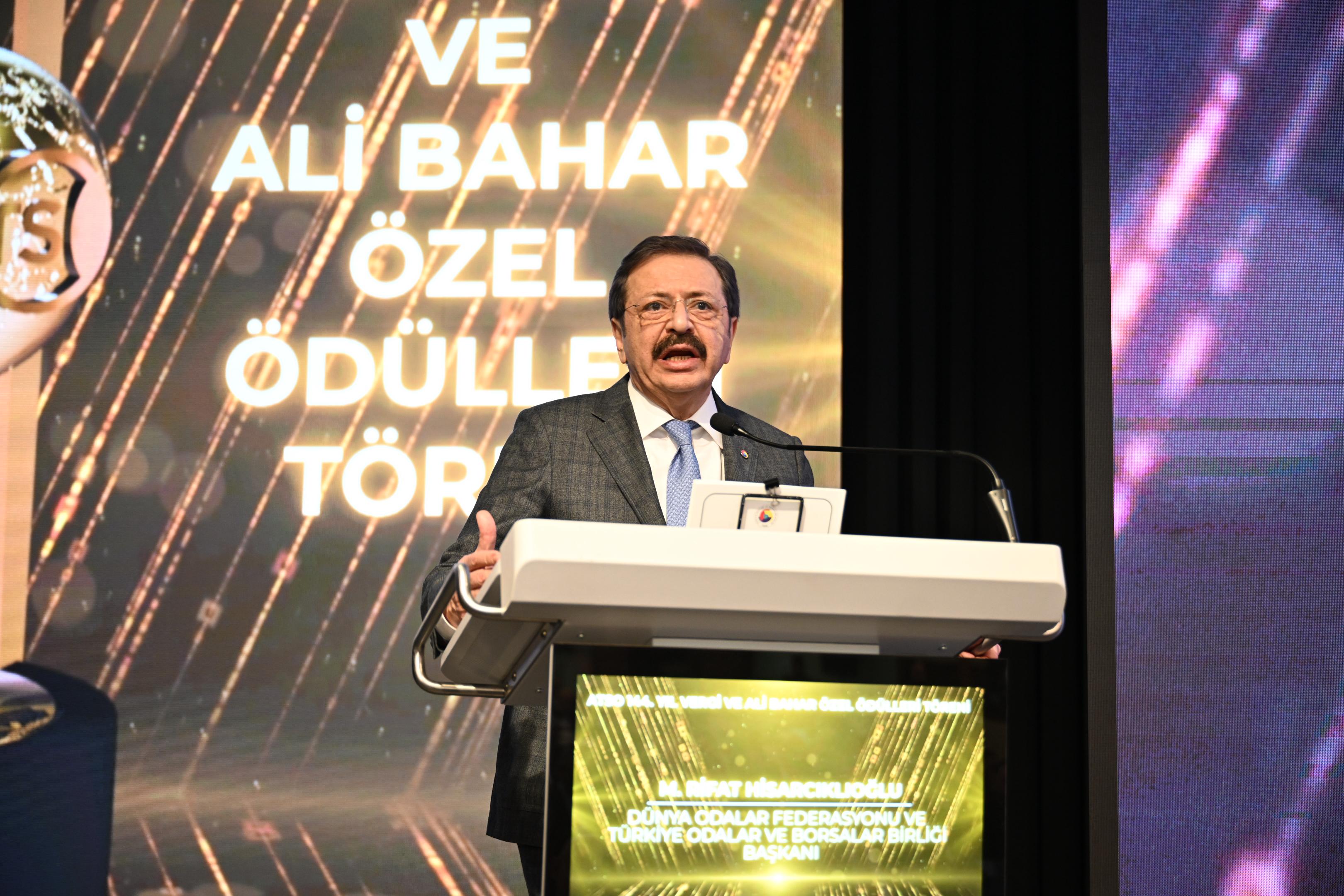Konuşmaların ardından TOBB Başkanı Rifat Hisarcıklıoğlu ve protokol üyeleri tarafından ödüller takdim edildi. (DHA)