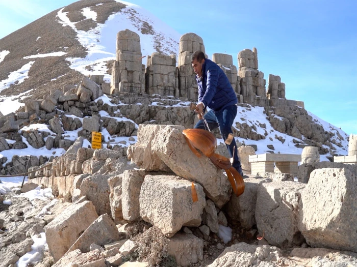 ADIYAMAN, (DHA)-ADIYAMAN'da Nemrut Dağı'na tırmanan ve renkli kişiliği ile bilinen türkücü Aydın Aydın, yapay zekanın birçok mesleği ele geçireceğini belirterek sazını parçaladı.
