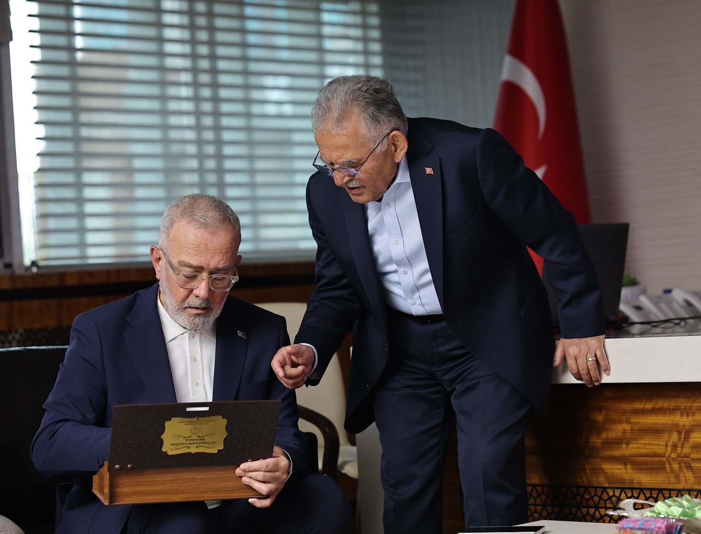 8’inci Kayseri Kitap Fuarı’nda söyleşi ve imza günü programı için kente gelen AK Parti Grup Başkanvekili ve Manisa Milletvekili Bahadır Yenişehirlioğlu, Büyükşehir Belediye Başkanı Dr. Memduh Büyükkılıç’a nezaket ziyaretinde bulundu.