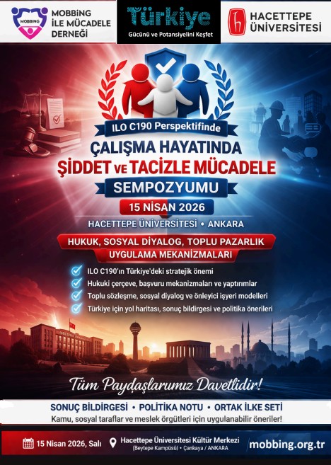 Tam da bu ihtiyaçtan hareketle, 15 Nisan 2026 tarihinde Hacettepe Üniversitesi’nde “ILO C190 Perspektifinde Çalışma Hayatında Şiddet ve Tacizle Mücadele Sempozyumu” gerçekleştirilecektir.